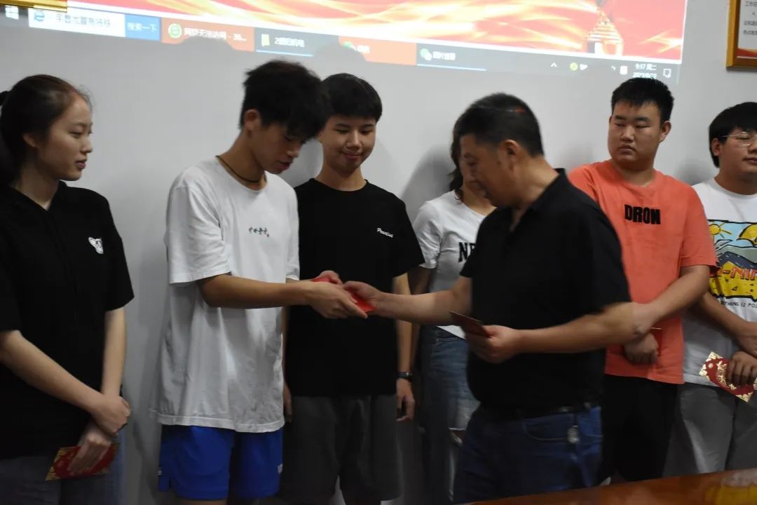(企業領導給學生頒發獎學金)